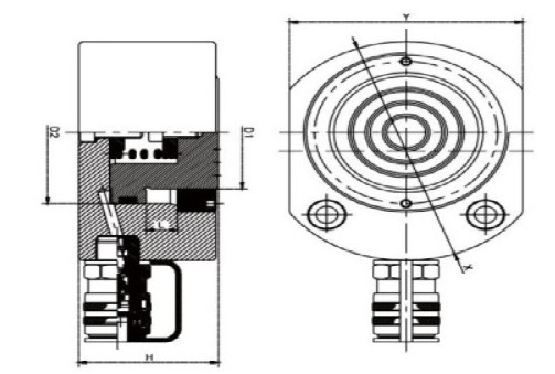 | 型號 | 起重量 | 起重高度L | 高度H | 外徑Y(X) | 液壓油容量 | 活塞桿直徑D1 | 油缸內徑D2 | 重量 |